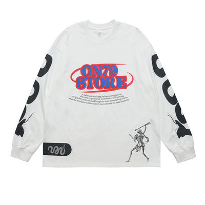Impressão personalizada Dtg Impressão de tela Carta T-shirt gráfica Homens Unisexo 230 gsm 100% algodão Grande queda ombro camiseta de manga longa