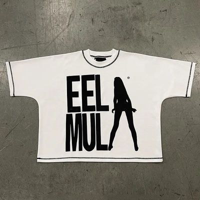 T-shirt de colagem de contraste branco com pesos pesados de algodão de peso pesado de algodão cortado Homens |